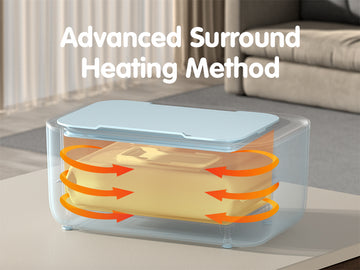 Awesmom portable baby wipe warmer is different from the common brand wet wipes dispenser, we abandon Lagging bottom heating. Heating around the inner of the box, ensuring that each piece of wet wipes can be evenly heated, avoid appearing local overheating.